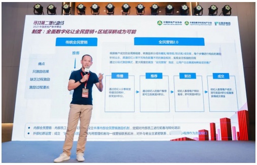 中國最有價值的私域流量在開發商手里,但這些流量不是全民營銷的工具,而是開發商理應用心服務的業主——全民營銷是好服務的副產品。今天中午我和一家開發商的負責人聊天,對方分享了一個數據:全民營銷占比11.4%。這個占比放在全國不差,但我接下來要分享的這家開發商實現了全民營銷占比40%——也就是說一千億多的銷售額中有超過400億是老業主達成的。這個驚人的成績就是服務好現在的業主能為開發商帶來的效果。