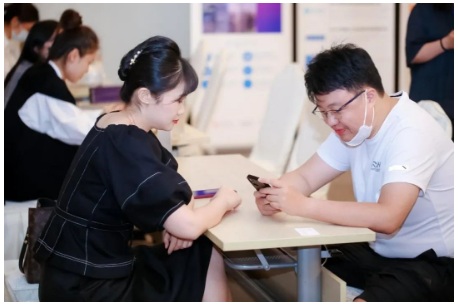 頭腦風暴般的知識分享環節結束后,又到了結交新朋友的“商務社交”環節。這次增設了專家咨詢展臺,讓專家們可以一對一面對決策層們進行專題解答;也有找到意向商務社交的伙伴,熱烈討論。