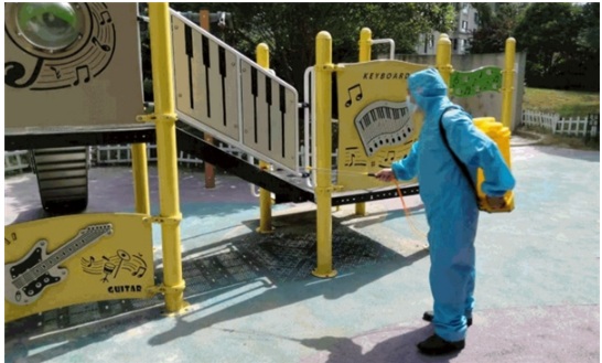 疫情期間南京世茂君望墅項目物業人員在認真消殺