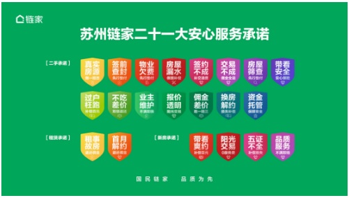 針對(duì)行業(yè)不規(guī)范作業(yè)行為,會(huì)上,蘇州鏈家發(fā)布了升級(jí)后的21大品牌服務(wù)承諾,包括“傭金差價(jià),吃一賠三”等15項(xiàng)二手交易服務(wù)承諾、“陽光交易,0服務(wù)費(fèi)”等4項(xiàng)新房交易服務(wù)承諾、“首月解約,退換租金”等2項(xiàng)租賃交易服務(wù)承諾,為交易安全保駕護(hù)航。