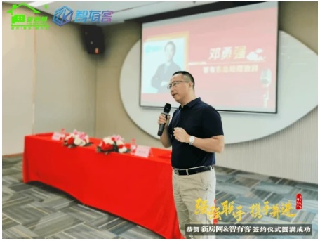 新房網董事長奉鵬先生與智有客總經理鄧勇強先生,代表雙方進行了現場簽約。通過本次簽約,新房網與智有客,強強聯手,攜手并進,以嶄新的姿態,踏入2021年新的發展征程,共創房產交易新紀元。