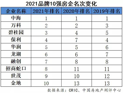 根據(jù)測評報告,榜單前三由中海、萬科和碧桂園占據(jù)。中海繼續(xù)位列榜首,品牌價值為751億元,萬科、碧桂園分別以669億元和573億元位列第二、第三位。保利發(fā)展、華潤置地、龍湖、融創(chuàng)中國、招商蛇口、世茂和金地分列四到十位。報告顯示,近幾年50強品牌房企位次基本穩(wěn)定,2021年50強榜單變動率為14%,20強榜單變動率為10%,10強榜單變動率為20%。
