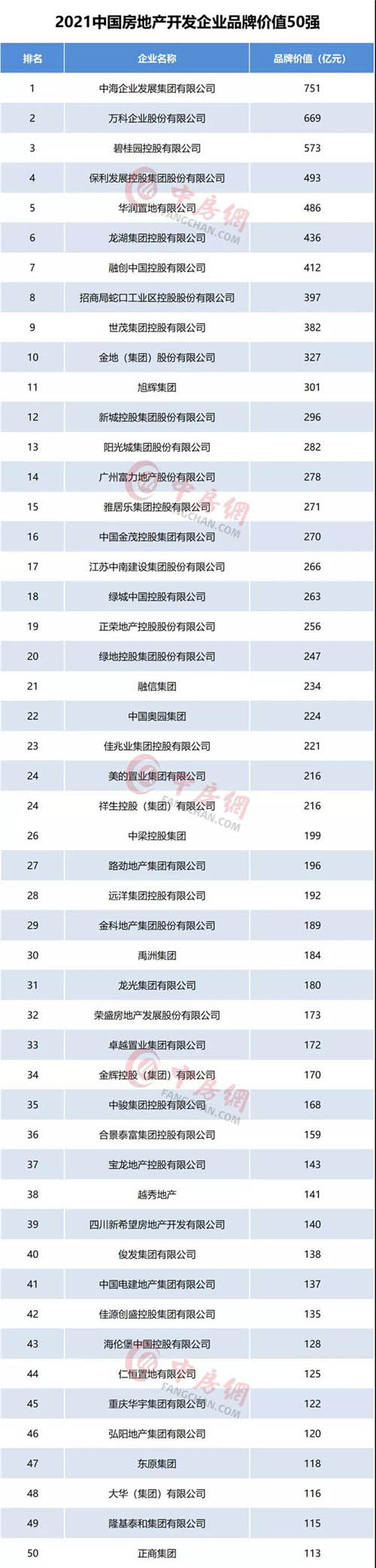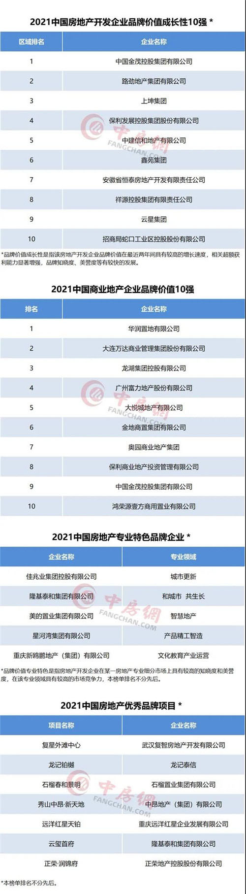 2021中國房地產(chǎn)開發(fā)企業(yè)品牌價值系列榜單