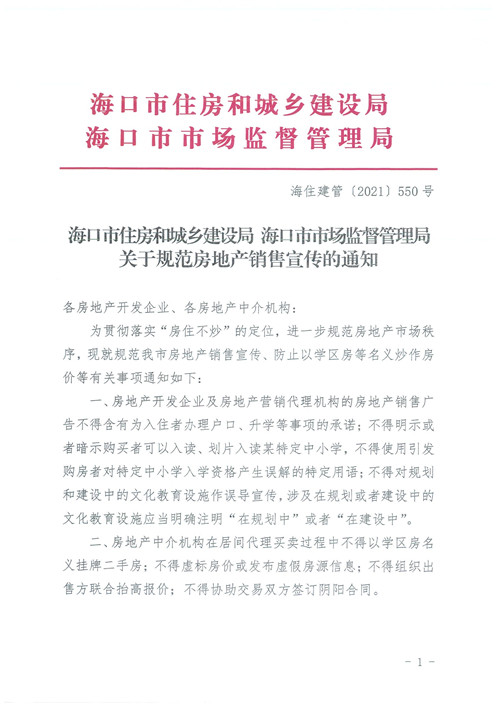 9月26日,海口市住建局和海口市市場(chǎng)監(jiān)管局聯(lián)合下發(fā)《關(guān)于規(guī)范房地產(chǎn)銷售宣傳的通知》,就規(guī)范海口市房地產(chǎn)銷售宣傳、防止以學(xué)區(qū)房等名義炒作房?jī)r(jià)作出規(guī)定,明確房地產(chǎn)中介機(jī)構(gòu)在居間代理買賣過程中不得以學(xué)區(qū)房名義掛牌二手房。