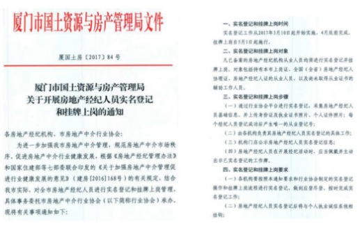一直以來,為了盡可能多地抓住潛在客戶,一系列違規現象屢見不鮮,如:房源或價格造假、重復錄入房源信息等,“虛假房源”可以說是中介行業長期存在的“頑疾”。而為提高市場房源信息真實性,規范從業人員行為,廈門市主管部門于2017年就曾發布《關于嚴格執行廈門市存量房房源發布實施房源信息編碼規定的通知》、《關于開展房地產經紀人員實名登記和掛牌上崗的通知》,嚴格執行房地產經紀機構及其網站發布存量房房源信息必須標明房源信息編碼的規定,從業人員須實名登記并掛牌上崗。