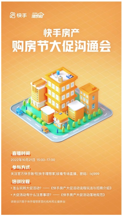 隨著各地相繼出臺一攬子政策刺激樓市,在線上電商流量爆發期即將到來之際,快手房產將聯動房產機構、房產主播與開發商合力打造年末房產大促活動“快手購房節”。據悉,此次“快手購房節”將于11月18日至12月18日正式開啟,目前招商工作正在火熱進行中。