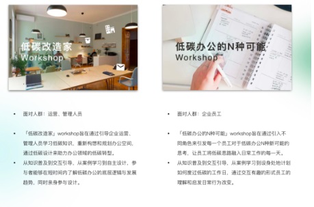 最后歡迎大家報名低碳辦公工作坊,與我們重新想象一個兼顧用戶體驗和低碳可持續的“第二空間”。我們設計了“低碳改造家”和“低碳辦公的N種可能”兩種工作坊,供大家參考。