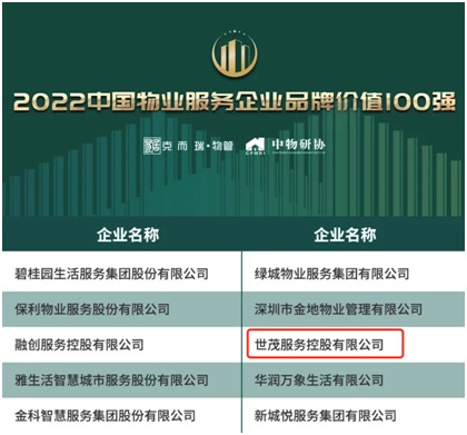 【世茂服務榮獲“2022中國物業服務企業品牌價值100強”TOP6】