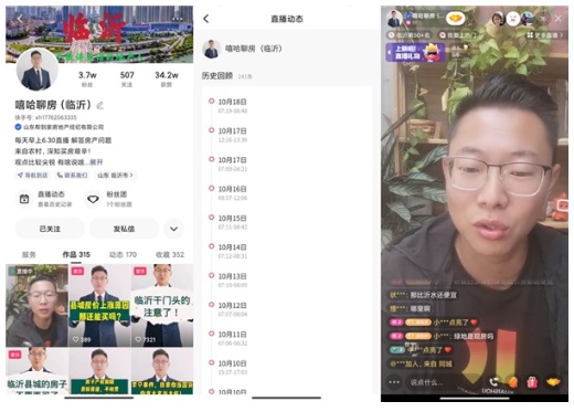 通過門店獲客越來越難,想干好房產行業必須尋找新渠道。期間,他關注到臨沂比較知名的主播@房產咨詢趙鳳艷,得知她在快手一場直播能獲客10到20組,每個月成交5到10套房子,嘻哈聊房意識到自己必須學習直播賣房。
