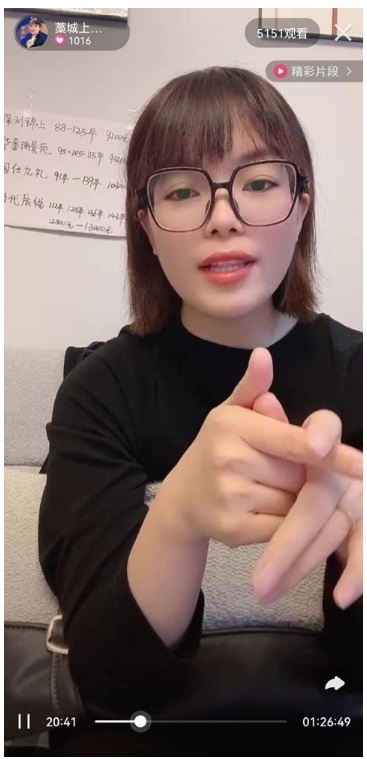 大姐年紀大了,手機都不太會用,但常在快手上看房產主播直播,也經常發彈幕問問題。“大姐問的問題都比較‘小白’,而且問過的還會重復問,可能也是因為買到過爛尾樓,所以比較謹慎,有些人不耐煩就會懟她,我一般都是耐心地給她解答。”