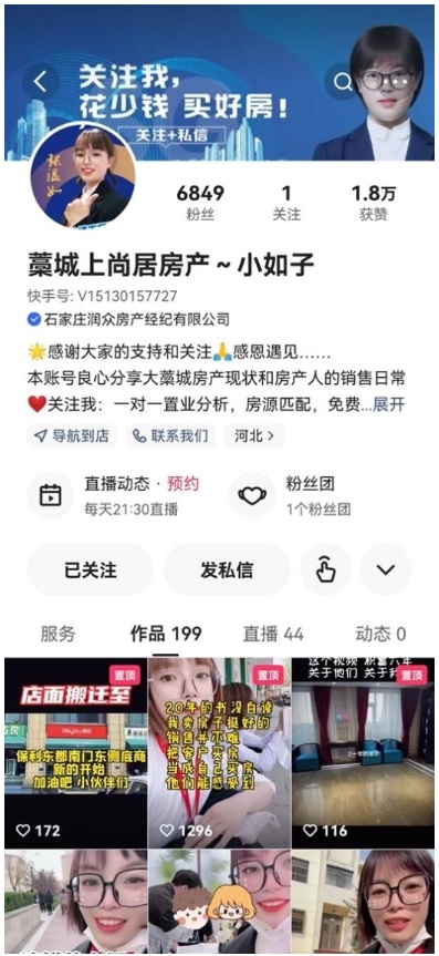 “藁城的教育比周邊好,很多周邊縣城村鎮的人來這邊上學,而且現在私立學校都轉為公立學校,施行劃片上學,學區房成了剛需。”過去靠發宣傳單無法覆蓋的周邊地區客戶,如今都通過快手找上了小如,在小如的整體客戶中占了超90%的比例。