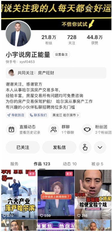 進入房產行業12年,利用快手分享房產信息4年,巔峰時,小宇每天要帶七、八組客戶,單月成交房產能達到近50套。在服務過的諸多客戶中,有位大哥令小宇印象深刻。