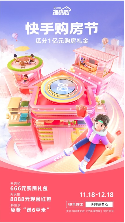 除去政策上的利好,短視頻直播也正在為房產行業提供增長新機遇,比如快手平臺利用流量優勢助力新房銷售。據悉,11月18日,快手房產聯動房產主播、房產機構與開發商,正式上線年度大促活動“快手購房節”。活動從11月18日持續至12月18日,將通過“給流量、給補貼、給激勵”實現多方合作共贏。