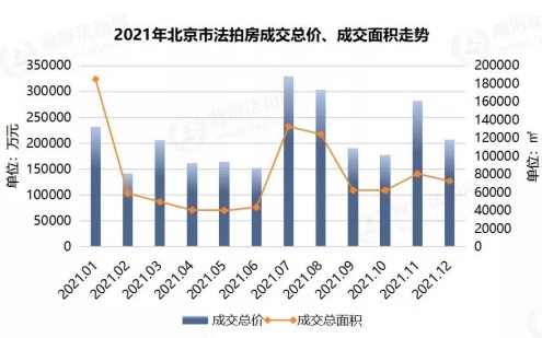 2021年,北京法拍房市場成交總價達254.67億元,成交面積95.15萬㎡。其中,7月份達到年度成交面積峰值,為13.27萬㎡,成交總價在1月份達到最高值,為23.19億元。
