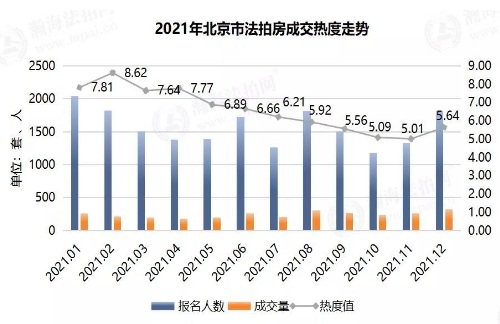 2021年,北京法拍房市場共計掛牌房源6731套,成交2905套,環(huán)比漲21.75%(按照扣除撤拍房源數(shù)量后計算得出)。總體來看,12月份掛牌量創(chuàng)新高,成交量321套,為全年成交量的最高值。