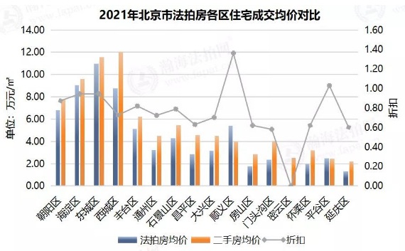 瀚海數(shù)據(jù)研究院統(tǒng)計,2021年北京法拍房市場新增法拍房源6835套,環(huán)比2020年的5640套上漲21.19%。成交2905套,成交率54.2%,其中住宅成交率72.43%,別墅成交率50.94%。成交折扣7.9折,其中住宅成交折扣8.2折,別墅7.4折,商辦7.1折,全年累計為購房者釋放近90億元購房差價。