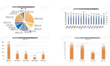 截止到2022年1月1日,1月份北京市有效待拍房源共524套,其中住宅269套、別墅26套、商辦229套,平均起拍折扣6.9折。