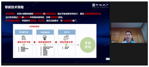 上海建工集團工程研究總院綠色建造研究所副所長賈珍在會上從綠色設計、施工、碳匯技術等多維度,全面對零碳建筑達成路徑進行了解析:”適應氣候特征和場地條件,通過被動式建筑設計最大幅度降低建筑供暖、空調、照明需求,配合主動技術措施最大幅度提高能源設備與系統效率,以最小的能源消耗提供舒適室內環境,充分利用可再生能源,實現建筑零能耗。”