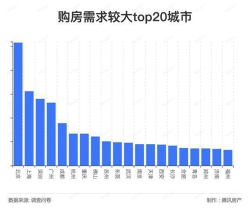 調查數據顯示,一線城市、準一線城市仍然是買房人的首選城市。具體來看,買房需求仍然集中在北上廣深四個一線城市以及杭州、成都、重慶等準一線城市,買房需求較大的TOP20城市中,除了濟南、石家莊、福州為二線城市,其他17個城市均為一線城市和新一線城市,其中北京依舊是買房需求最大的城市。