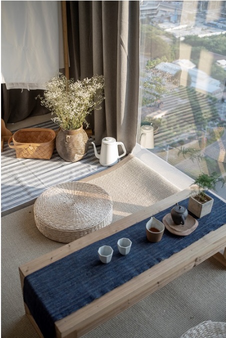 主臥以白色墻面與原木色地板的搭配,營(yíng)造一種天然之態(tài),灰色窗簾與藍(lán)白床品形成對(duì)比,讓空間層次分明,溫馨有致。而在陳設(shè)方面,設(shè)計(jì)師則將一些老房子用過的舊木料、舊油壺、舊酒罐進(jìn)行升級(jí)及改造,形成獨(dú)特的陳品放置其中,用有溫度的物件,傳遞幾代人的情感,營(yíng)造獨(dú)有的氣息。