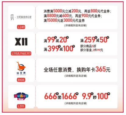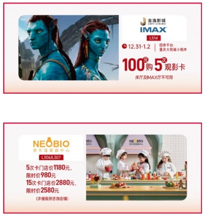 100元購5次觀影卡、任意消費換購年卡、99元購3件盲盒……重慶大悅城各大城市級門店在活動期間也給出了給力的優惠力度。例如全球潮玩集合品牌X11重慶首店推出滿99元減20元、部分商品5折、部分盲盒3件99元等優惠,喜愛盲盒、手辦的消費者可別錯過;還有重慶首店、一站式家庭中心奈爾寶推出原價1180元5次門店卡現只需980元,趕緊為寶寶囤起來……