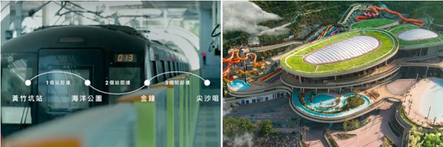 說到海洋公園,不得不提海洋公園巨資打造的全新樂園項目「水上樂園」,已于2021年秋季開幕。水上樂園分為五個主題區域,包括「歡樂堡礁」、「躍動流域」、「冒險灣岸」、「迷失部落」以及「絕嶺深谷」,合共提供27個水上活動設施。相信全新出發的水上樂園,勢必成為一家大小假日的好去處。而海洋公園正是距離港鐵黃竹坑站上蓋「港島南岸」物業發展項目的一站路程之遙而已。