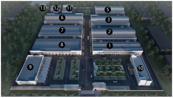 建筑內部可根據企業要求自由分割,辦公一棟,廠區八棟,獨棟面積2500㎡-3500㎡,單層9-11米層高,內部靈活的可分隔性及實用性充分滿足辦公、研發需要。