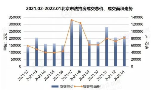 1月,北京法拍房市場成交21.67億元,成交面積8.23萬㎡。本月北京法拍房市場成交面積環比上漲13.54%,成交總額環比微漲4.8%,北京法拍房出現開年筑底回升的趨勢。