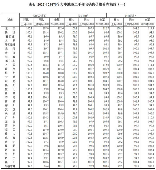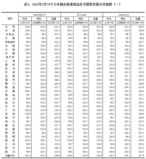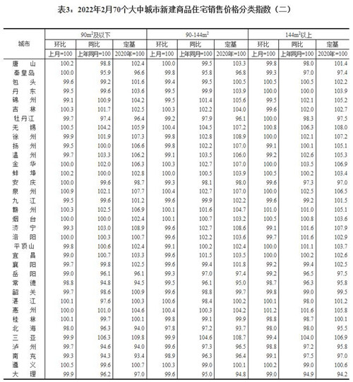 房訊網訊 國家統計局3月16日發布2022年2月份70個大中城市商品住宅銷售價格變動情況。