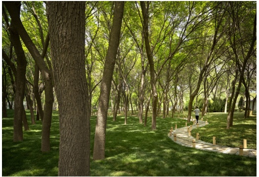 縵合·北京項目所在地塊,坐落在朝陽公園北園,地塊本身就有2萬多顆原生大樹,在修建項目時都保留了下來。