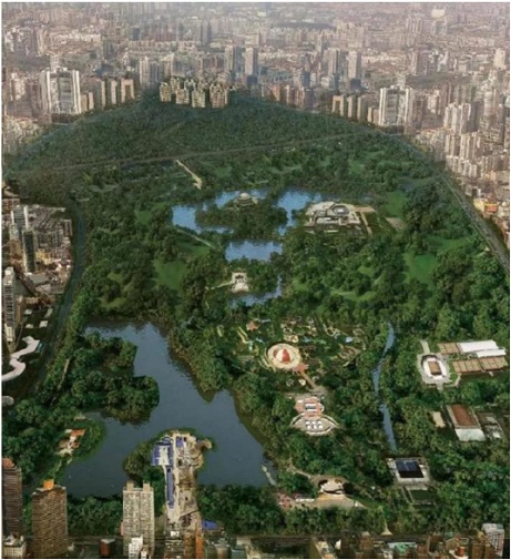 縵合是先有園后有宅,下圖中一片綠色頂部那幾棟建筑,就是縵合業主們的家,它們完全融入了一片綠海之中。抬眼望去,就是滿眼綠色。