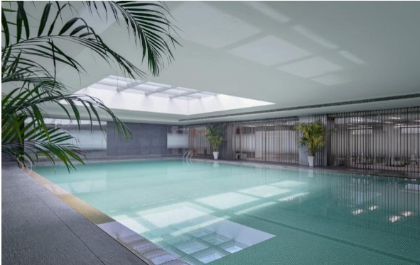 華府會里有一年四季恒溫的泳池,冬天也可以游個痛快。有完備的健身設施,可以讓客戶的體型更加完美。
