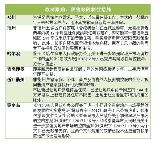 據(jù)不完全統(tǒng)計(jì),鄭州之后,福州、哈爾濱、青島即墨、衢州、秦皇島等地也紛紛取消限購、限售等限制性措施。