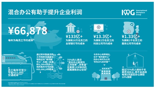 (2022年4月20日,上海)成立30余年、全球最大辦公空間運營商之一、擁有 Spaces 和 Regus 等高品質(zhì)“靈活辦公”解決方案的IWG集團預(yù)測,混合辦公模式將于2022年度繼續(xù)加速發(fā)展。伴隨席卷全球的混合辦公模式潮流,國際勞動市場在不拘于固定工作場所的條件下日益復(fù)蘇,越來越多的企業(yè)正意識到混合辦公對于經(jīng)濟、社會與員工健康的益處。近期研究表明,采用混合辦公模式、利用靈活辦公空間能顯著降低企業(yè)的運營成本,包括租金、供暖及后勤人員等在內(nèi)的傳統(tǒng)固定經(jīng)營費用,每年平均每員工可省約66,878元。