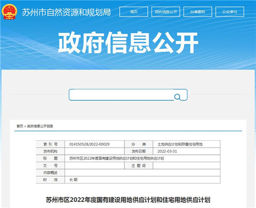 房訊網訊 蘇州市自然資源和規劃局近日發布《蘇州市區2022年度國有建設用地供應計劃和住宅用地供應計劃》,計劃編制的范圍為蘇州市區,包括吳江區、姑蘇區、吳中區、相城區、工業園區、高新區;計劃供地期限為2022年1月1日-2022年12月31日。