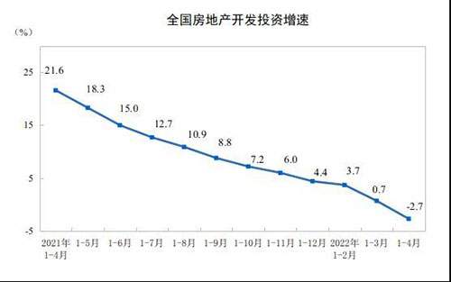 從供應端看,國家統計局數據顯示,1-4月份,全國房地產開發投資39154億元,同比下降2.7%;其中,住宅投資29527億元,下降2.1%。