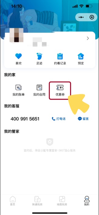 step 4 邀請注冊并簽約后在“我的”-“優惠券”即可查看優惠券獎勵