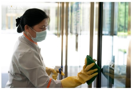 特殊期間,金地威新國際中心嚴格執行政府相關規定,專人專崗把控復工人員與入園流程,正確佩戴口罩,出示健康碼、行程碼以及72小時核酸陰性證明,并對園區內外公共區域及辦公區域進行定時消殺工作,精準、細致地對寫字樓電梯、衛生間、樓道等場所進行無死角消毒,悉心守護員工及入駐企業,全力打造安全的辦公環境。