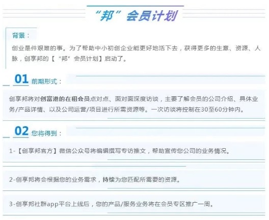 一方面創立“創享邦”平臺,通過IT技術讓創業型企業進行線上線下的交流,實現產品和經營的互通有無,提高企業收入。