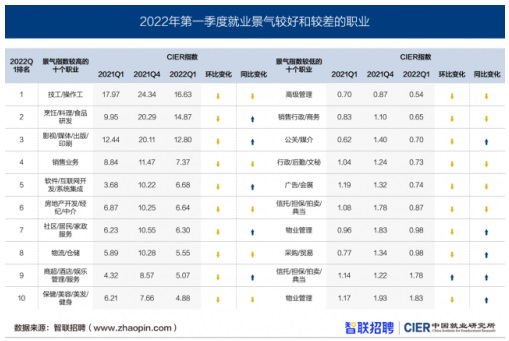 近日,中國人民大學中國就業研究所與智聯招聘最新發布的2022年第一季度《中國就業市場景氣報告》表明,2022年一季度景氣指數較高的10大職業中“房產經紀”位居第6位,成為吸納就業的生力軍。