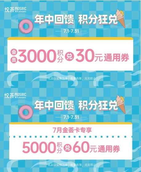 為了持續回饋消費者,7月1日—7月31日,重慶悅薈“年中回饋 積分狂兌”再度發力,為消費者打造了一場年中積分兌禮盛宴,喚醒消費者購物熱情。此次活動促銷力度再次升級的同時也為消費者帶來不同以往的購物新體驗,增強消費者幸福感與歸屬感。