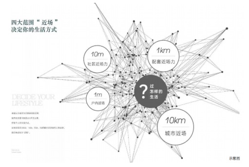 卓越集團(tuán)在調(diào)研中發(fā)現(xiàn),每個(gè)人的生活體驗(yàn)由他所在的10KM(事業(yè))、1KM(配套)、10M(社區(qū))和1M(家庭)范圍內(nèi)的空間和人物決定。四種日常軌跡到達(dá)的距離和場(chǎng)所為業(yè)主創(chuàng)造了最主要的生活、工作、社交場(chǎng)景,每個(gè)距離都對(duì)應(yīng)代表客戶(hù)的空間需求。