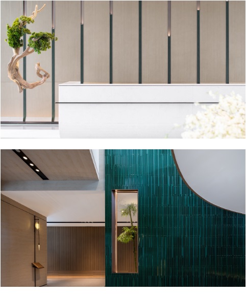 以外立面為例,東莞晴熙云翠建筑立面設(shè)計(jì)以雁鳥(niǎo)飛過(guò)橫崗湖水面的場(chǎng)景為靈感,用曲線(xiàn)弧度為設(shè)計(jì)主體,結(jié)合使用鋁板與玻璃幕墻;成都晴翠在院落生活的基礎(chǔ)上,建筑主體則通過(guò)大落地玻璃幕墻與金屬條框的材料,同時(shí)輔以不規(guī)則的挑檐;昆明滇池晴翠以滇池湖山為外景,通過(guò)玻璃通透外立面、真石漆涂料、石材追求現(xiàn)代感,并以水面反射天空藍(lán)色,實(shí)現(xiàn)建筑立面景觀化。