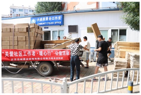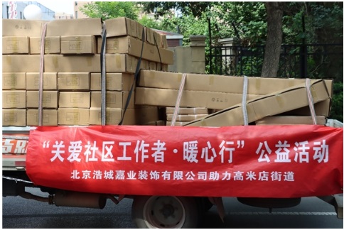 眾志成城、抗擊疫情,為切實做好疫情防控工作,緩解社區(qū)一線人員工作壓力,營造良好的社區(qū)環(huán)境。7月25日,北京浩城嘉業(yè)助力高米店街道辦事處走進(jìn)大興片區(qū),共同開展了“關(guān)愛社區(qū)工作者·暖心行”公益活動。當(dāng)天,北京浩城嘉業(yè)裝飾有限公司向高米店街道辦事處工作人員捐贈愛心防疫物資遮陽帳篷52頂、飲用水200件,用實際行動承擔(dān)了企業(yè)應(yīng)盡的社會責(zé)任。