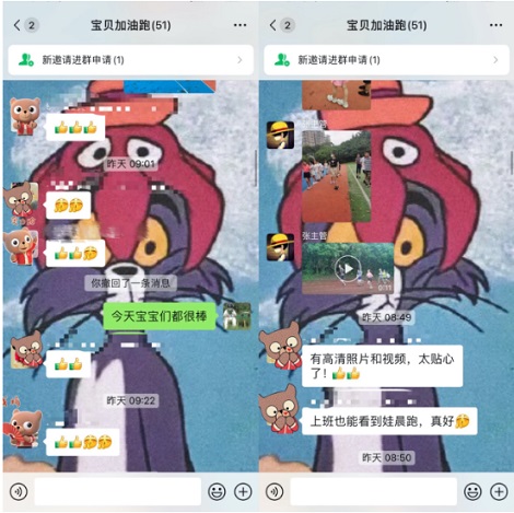 △家長們在跑團(tuán)群里分享點(diǎn)贊