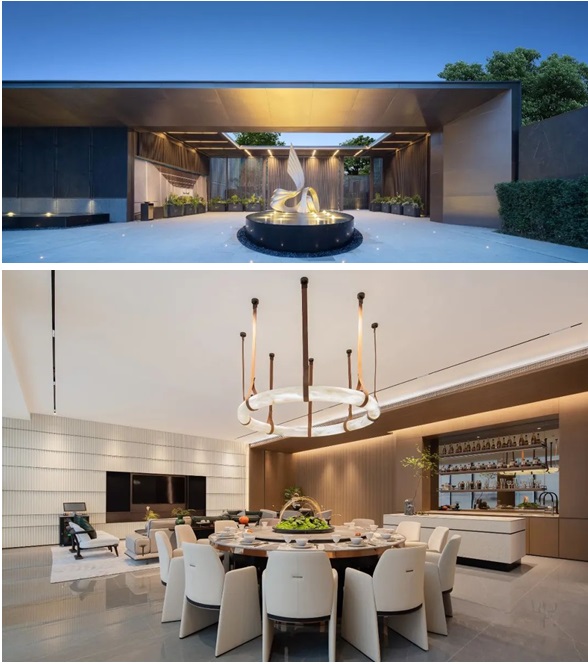 近期即將開放的湖疊墅,則通過圍合式院落及實體圍墻的設計,為湖州人物帶來合院級的院落享受。8層及以下的低密建筑,4房起步的大面積改善社區,環島式抵達,極大尺度景觀,在保障每層面積與通透關系的同時,使得業主最大限度得到景觀面。
