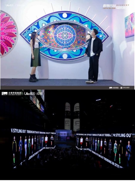 如4月開業的合景·悠方(廣州知識城),延續一貫的“藝述”基因,與當代藝術平臺摩登氧分及國內知名藝術家黃思祈合作,開展「EYE FOR INBORN FUN·熒趣光瞳」主題藝術黃埔首展,通過光影藝術讓雙眼感受多維世界。6月,合景·悠方(成都)四周年“肆意生長”影像先鋒藝術展,聯合國際知名裝置藝術家師進滇,聯動城市地標天府雙塔,為市民帶來了一場光影與藝術的跨界碰撞。