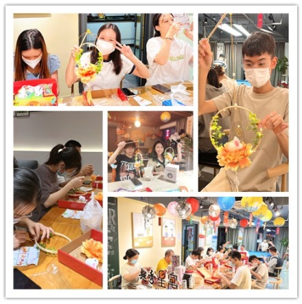 在滿滿的中秋古風氛圍下,越秀星寓精心準備了一系列中秋限定活動,做燈籠猜燈謎品月餅…讓星友租客們在公區一起過節,感受過節的熱鬧氛圍。月黑見宮燈,孤光一點螢,經過一雙巧手將各色花兒、小玉兔、流蘇、彩珠組合粘貼,靈活的萌兔俯臥牡丹花上,狀似探頭聆聽的“好奇寶寶”。當親手制作的古風玉兔花燈懸掛起來,成就感與喜悅交織,笑容如花燈上那嬌艷喜人的花朵,點點燈光映襯夜幕,照亮中秋浪漫儀式感。