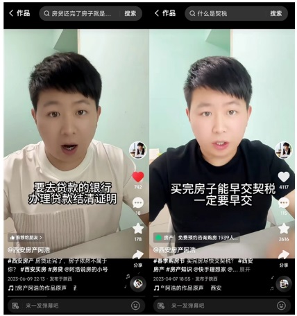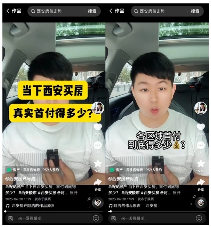 “西安房產新政策該如何解讀?”“西安剛需買房有哪些選擇?”“買完房為什么要盡快交契稅?”……在阿浩的主頁里,從看房、選房到買房,阿浩從不同的角度講解房產內容,在通俗的案例中傳播專業的知識。