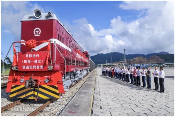 再將目光轉(zhuǎn)向國(guó)內(nèi),9月18日,粵黔合作“珠(海)遵(義)”鐵路貨運(yùn)班列首發(fā)儀式在高欄港舉行,列車由廣珠鐵路珠海西站駛出,奔向貴州遵義的閣老壩鐵路貨運(yùn)站場(chǎng)。 “珠遵”鐵路貨運(yùn)班列的開通構(gòu)建了東西部產(chǎn)品流通雙向循環(huán)體系,為珠海融入“一帶一路”、遵義融入大灣區(qū)增加了“多式聯(lián)運(yùn)”的交通保障。